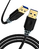 Universal USB 3.0 Male to Male: This USB to USB Cable features dual USB A ports at each end, allowing you to connect two devices at the same time. Perfect fit for syncing data like TV, external hard drives, USB hubs, Windows PC desktops, Laptop Cooling Pad fans, DVD players, Camera, , Set-Top Box, Blue-ray Drive, Car Bluetooth Speaker, and more USB peripheral devices High-Speed Data Transfer: Equipped with USB 3.0 tech, our USB-A male cable enjoys fast data transfer speeds of up to 5Gbps, 10 times faster than USB 2.0. It is also backward compatible with computer USB 2.0 and USB 1.1 ports. Making data transferred within fewer seconds, no more waiting Play & Plug: The double side usb data cable no software or drivers are needed! Simply plug in this USB 3.0 Type A to Type A cable for instant connection. whether you're transferring files, connecting a printer, hard drive enclosures, printers, modems, cameras, and more. It's quick, hassle-free, and ideal for both home and professional use Durable Material: Built with premium PVC-coated materials and reinforced connectors. This male-to-male USB A cable is designed to withstand over 45,000 bends, ensuring it holds up to daily wear and tear. The 6ft length, provides flexibility to connect devices even at a distance. Perfect for desk setups, media centers, or connecting devices across a room without restriction What You Get: 1Pack USB-A to USB-A Cable 6feet in Black. Please Note: 1.Only for data transfer; 2.Do NOT support for video transfer; 3.Do Not support for charging; 4.Do Not support for connect two computer/Laptop/PC directly!!!