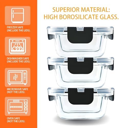 - Upgrade Airtight & Leakproof: Our glass food storage containers adopting four hinge pin locking system and rubber gasket sealing. Compared to other lids, our lids have the hinge with pin that can open easily, suitable for dishwasher use, will not break. Other bariatric meal prep containers sellers have living hinges which will eventually break after time with constant dishwasher use.