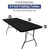 homing 2 Pack 6 Foot Rectangle Elastic Fitted Tablecloth, Waterproof Fabric Table Cover, Washable Polyester Table Cloth for Picnic, Camping, Outdoor (Black, 30" x 72")
