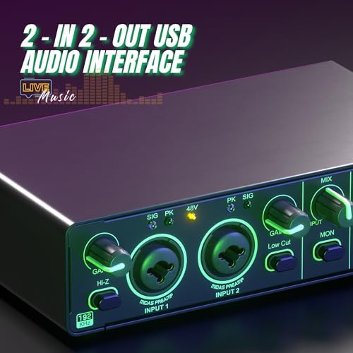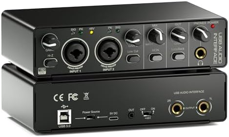 - 48V Phantom Power: Enabled at the XLR socket for powering condenser microphones, USB audio interfance ensures high-quality sound capture