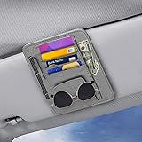 Small Leather Car Sun Visor Organizer - Multifunctional Car Interior Sunglass Holder Auto Visor Document Holder - Auto Card Sleeve Pocket Pouch Organizer for Driving License Registration Pen (Grey)