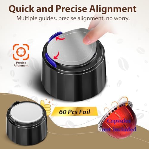 Reusable & Refillable Pods Kit for Nespresso Vertuo–60 Refill Aluminum Foil Lids, Compatible with Nespresso Vertuo & Vertuoline Machines, Coffee Capsules Kit with Lid Cutter, Holder & Scoop
