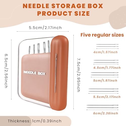 - Different sizes: Include 10 needles (5 sizes). 2pcs x 1.57inch, 2pcs x 1.77inch, 2pcs x 1.97inch, 2pcs x 2.17inch, 2pcs x 2.36inch, the magnetic needle box comes with 5 plugs Slots and divided storage to meet different needs.The needle box can hold up to 25 needles, you can add more by yourself