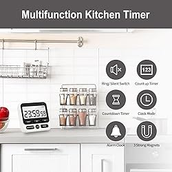 Versatile Timing Solutions: Seamlessly switch between countdown timer, count up timer, and clock modes with a single press of the MODE button. With a countdown capacity of up to 24 hours, you can easily conquer any timing challenge life throws at you. Stunning Large Display: Experience the advantage of a 30% larger, crystal-clear HD display featuring anti-glare technology. Enjoy instant readability in any environment—whether you're in the kitchen, gym, or outdoors—without straining your eyes! Robust Magnetic Grip: Equipped with three powerful industrial-strength magnets, this timer adheres securely to your fridge or oven hood. Keep it within reach while you create culinary masterpieces, even in the busiest of kitchens. Buzzer/Mute Flexibility: Effortlessly switch between silent mode for focused study sessions or library visits and a loud alarm for those bustling kitchen moments. Enjoy the ability to customize your timing alerts without sacrificing performance. User-Friendly Controls: Enjoy hassle-free operation with glove-friendly tactile buttons, intuitive memory recall, and a fast-forward option. Easily pause and resume your timing with a single click—no more tedious setup! Compact & Portable Design: Battery-operated and lightweight, this timer is your ideal companion for cooking, exercising, or studying. Take it anywhere you need precise timing, ensuring you're always on track! Reliable Peace of Mind Warranty: Backed by a 2-year premium warranty and free lifetime algorithm updates, enjoy the confidence of worry-free usage. We automatically optimize your timer's precision through your Amazon account, letting you focus on what matters most!