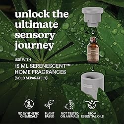 Waterless, Patented Air Diffusion Technology: Mists with lighter-than-air microdroplets to efficiently disperse ultra-fine fragrance, no water needed Premium, Natural Home Fragrance: SereneScent home fragrance oils (sold separately) are created with all natural ingredients for premium therapeutic benefits Custom Scent Experience: 3 intensity levels, intermittent misting, and ambient light—all from the base control or app Lights Fade, Fragrance Continues: Enjoy the warm glow of ambient solid or breathing lights in white, red, blue, purple, green, or orange What's In The Box: (1) Homedics SereneScent Fabric Home Fragrance Diffuser 15ml, (1) Adapter with Power Cable, (1) Quick Start Guide with 1-Year Limited Warranty