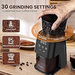 Conical Burr Coffee Grinder with Touch Panel, Adjustable Coffee Bean Grinder with 30 Grinding Settings,2-12 Cups for Espresso,French Press & Drip Coffee