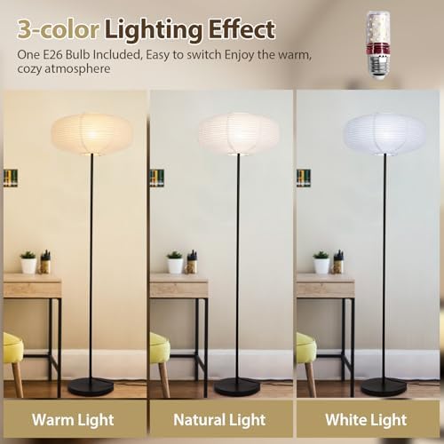 - 【 High-Quality Material】This lamp has a high-quality rice paper lampshade and a durable metal light pole. It is easy to maintain so it can have a longer service life. The metal base of this floor lamp adopts good stability, which is safe for your children and pets.