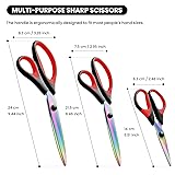 3Pcs Razor-sharp Tailor Scissors, Titanium Blades Shears Rubber Soft Grip Handle, Multi-Purpose Fabric Scissors for Adults, Office, Sewing, School(Red and Black)