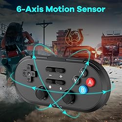 Compatible with Switch, Windows, iOS, Android, Steam Deck and more Full-featured retro controller: 4 Speeds Vibration, motion controls, Refined joysticks, precise triggers, wireless Bluetooth, rechargeable battery, home and screenshot Buttons Product Dimensions: 5.5 x 2.6 x 0.6in Auto Reconnect, Auto Hibernate, One Touch Wakeup, Reset Button Includes: 2 Wireless controllers, 2 USB C charge cable, 1 user manual