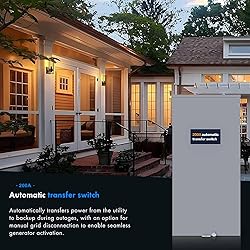 Seamless Power Transitions : This 200 Amp Automatic Transfer Switch is designed to seamlessly transfer the electrical load between a utility (primary) power source and a generator (backup) power source, it powers your entire household, including high-demand appliances, during outages. It ensures reliable, efficient power management when the grid goes down Advanced Digital Power Technology : Leverage state-of-the-art digital power management (DPM) to control up to 4 separate HVAC loads without requiring extra hardware. Designed to deliver efficient and smart power distribution for your critical home systems Wide Compatibility : Replacement for Generac RXSW200A3 Automatic Smart Transfer Switch. Compatible with 8-24 kw home standby generators. Featuring A Nema 3R Aluminum : The transfer switch features a robust aluminum NEMA 3R enclosure, offering lightweight durability and resistance to rust and corrosion. Combined with a heavy-duty Generac contactor, it ensures reliable performance with single-phase generators, even in harsh weather conditions like rain, hail, or strong winds Safety Lockable: It features an aluminum divider inside to prevent excessive contact with internal components for added safety. The lock hole at the bottom of the switch allows for safer outdoor installation Specifications: (Phase - Single) , (Amperage - 200) , (Voltage - 120V 240V 1Ø 60 Hz) , (Ats Poles - 2 Pole) , (Switch Circuits - Whole Service) , (Enclosure Type - 3R Aluminium) Easy Installation: The installation is straightforward, but if you're not familiar with electrical work, it's recommended to have an electrician install your new automatic transfer switch. Measures 6.3" x 30.0" x 13.5" overall and mounting holes are 26.8" x 10.5"