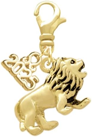 Delight Jewelry 3-D Lion - Gold-tone Clip on Charm with Mini Year 2025