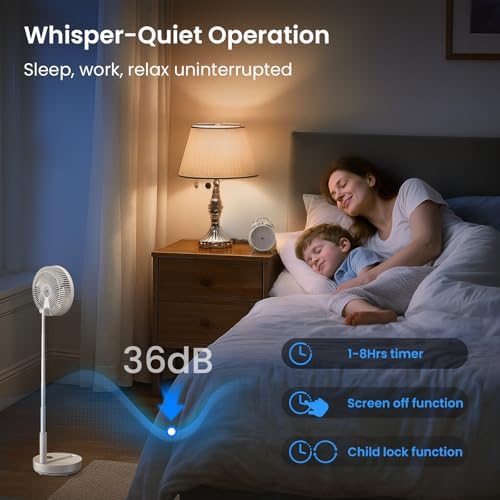 - Long-Lasting & LED Display: Built in 8000 mAh battery, this rechargeable fan can last 2.5-28.5H depend on different speeds to free from the cord resctriction. The LED display shows real time battery power, timer and speed at a glance. Convenient for you to charge the fan before drain for battery health.