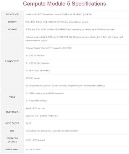 - Compute Module 5 enables you to leverage Raspbery Pi 5's powerful hardware and optimised software stack in your own custom systems and form factors.
