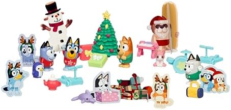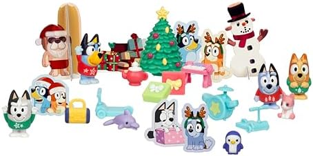 - Christmas Advent Calendar: Celebrate the holiday season by counting down the days till Christmas with our advent calendar for toddlers; this Bluey calendar pack includes 4 mini figures, 12 accessories, and 3 paper standees for the festive cheer