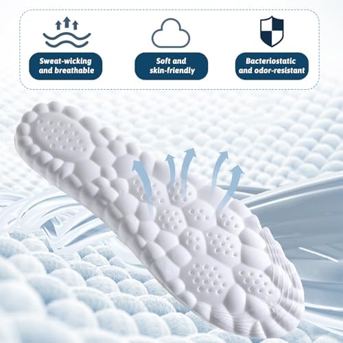 - 【Honeycomb Structure】Designed with a unique honeycomb structure, our cloud insoles ensure air circulation, keeping your feet cool and dry all day. The elf fiber fabric actively absorbs sweat, preventing moisture buildup and odors, making these insoles perfect for all-day wear.