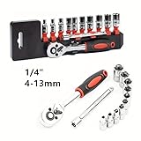 - 12pcs Ratchet Socket Set 1/4 Inch with Quick Release Handle Steel Socket Wrench Set for Boat Motorcycle and Bicycle Automotive Hardware Repair Tools