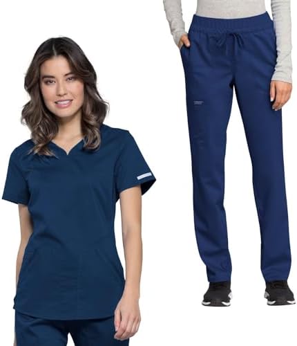 Founded in 1995, Cherokee has been bringing comfort, quality, and style to healthcare professionals ever since. Today, Cherokee is dedicated to bringing that same level of comfort and performance to you. Cherokee scrubs sets are the perfect fit for any personality. Look more professional while working with colorful prints to classic solids, Our brand has been trusted by healthcare workers. You work hard, you deserve a uniform that works just as hard to keep you comfortable but still looking professional. Our women's scrub top features a mock wrap-neck design that's practical and stylish. It offers nurses, doctors, and other healthcare professionals an affordable uniform solution without sacrificing comfort or style. The smooth stretch fabric is machine washable, making it easy to clean so it can last through your toughest shifts.
