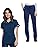 Cherokee Scrub Set for Women V-Neck Scrub Top WW601 Mid Rise Tapered Leg Drawstring Scrub Pant WW105, Navy - M Top/M Pant