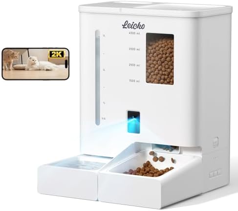 Automatic Cat Feeder with Camera,5G/2.4G WiFi Pet Feeder,2K HD Video and Night Vision,Easy APP Operation,Low Food and Food Clogging APP Tips,Water and Grain Large Capacity Feeder