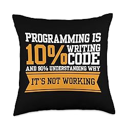 Grab this funny "Programming 10 Percent is Writing Code" Art for your programmer nerd dad, mom, husband, brother, friend or relative! It's the perfect geek gift idea & present for birthday, father's day And mother's day! 100% spun-polyester fabric Double-sided print Filled with 100% polyester and sewn closed Individually cut and sewn by hand Spot clean/dry clean only