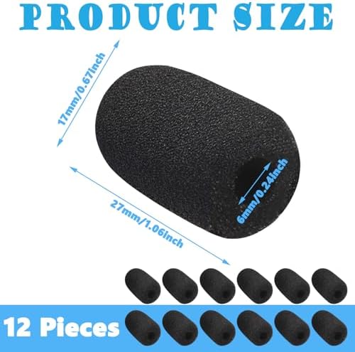- 【Package Content】You will receive 12 pieces of headset microphone cover, which are sufficient to meet your different daily usage needs. The size of the lapel microphone windscreen foam is 1.22 x 0.7 inches, and the caliber is 0.2 inches.