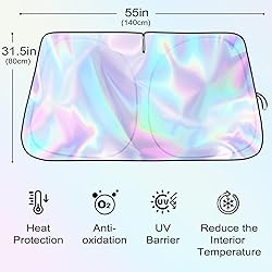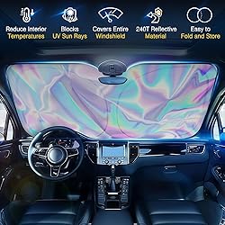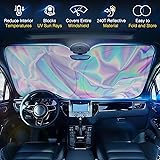 - Iridescent Sun Shade for Car Windshield, Foldable Universal Car Windshield Upgrade Sunshade Enhanced UV Rays Reflective Sun Visor Shade Keeps Vehicle Cool