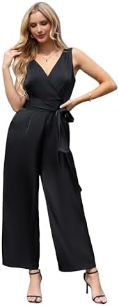 Love Welove Fashion Black Jumpsuit for Women – Dressy V-Neck Sleeveless Wide-Leg Romper – Elegant Formal Outfit