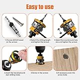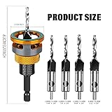 【Set Includes】Our premium 4-piece Countersink Drill Bit Set features M2 HSS tapered pilot drill bits in sizes 7/64"×3/8", 1/8"×3/8", 9/64"×3/8", 5/32"×3/8". 【Premium Materials】Constructed with M2 HSS, the pilot drill features a helical chip design for efficient cutting. The sharp HCS edges ensure smooth countersinks and counterbores, making it ideal for screws conforming to the 82-degree imperial (U.S.) standard. 【Adjustable Depth】Both drilling and countersinking depths can be easily adjusted using hex screws and depth control stops, providing enhanced flexibility for various tasks and applications. 【Versatile Applications】Suitable for a wide range of materials, including natural wood, engineered wood, MDF, particle boards, plywood, aluminum, non-ferrous metals, and decorative materials, this set is perfect for diverse woodworking and drilling projects. 【Usage Tip】For optimal performance and clean edges, operate the countersinks at a slow speed of approximately 200 RPM.