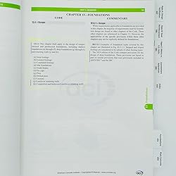 - The ACI 318-19 Building Code Requirements for Structural Concrete (ACI 318-19) and Commentary (ACI 318R-19) is is professionally highlighted and tabbed to assist you with navigating the textbook during your exam. The “Building Code Requirements for Structural Concrete” (“Code”) provides minimum requirements for the materials, design, and detailing of structural concrete buildings and, where applicable, nonbuilding structures. This Code was developed by an ANSI-approved consensus process and addresses structural systems, members, and connections, including cast-in-place, precast, shotcrete, plain, nonprestressed, prestressed, and composite construction. Among the subjects covered are: design and construction for strength, serviceability, and durability; load combinations, load factors, and strength reduction factors; structural analysis methods; deflection limits; mechanical and adhesive anchoring to concrete; development and splicing of reinforcement; construction document information; field inspection and testing; and methods to evaluate the strength of existing structures. The Code was substantially reorganized and reformatted in 2014, and this Code continues and expands that same organizational philosophy. The principal objectives of the reorganization were to present all design and detailing requirements for structural systems or for individual members in chapters devoted to those individual subjects, and to arrange the chapters in a manner that generally follows the process and chronology of design and construction. Information and procedures that are common to the design of multiple members are located in utility chapters. Additional enhancements implemented in this Code to provide greater clarity and ease of use include the first use of color illustrations and the use of color to help the user navigate the Code and quickly find the information they need.