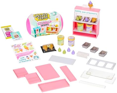 Take your Miniverse collection to the next level with Make It Mini Spaces™ Furniture! Now you can make, store, and display your minis in brand-new ways with buildable furniture that's just as customizable as your creations. Each Make It Mini Spaces™ Furniture set lets you craft adorable mini furniture pieces designed to showcase your growing collection! Whether you’re displaying your botanical beauties in plant holders or serving up your Café and Diner creations in stylish display cases, there’s a perfect piece for every mini moment. With 10 unique styles to collect, you can personalize your Miniverse like never before! This pack comes with TWO surprise balls (no duplicates) and inside every pack, you'll find all the parts needed to build your mini furniture piece—plus exclusive ingredients to stock, style, and accessorize your creations. Use the included collector’s guide to easily assemble your furniture. Bring your vision to life by decorating with themed stickers and exclusive ingredients. Every detail counts in your one-of-a-kind mini setup! Mix, match, and collect all 10 styles! Plus, they’re the perfect addition to your Make It Mini Spaces™ Starter Packs—create layered scenes and build your ultimate Maxiverse world! Once your furniture is built and styled, it’s time to show off! Highlight your favorite minis and create stunning displays that celebrate your unique Miniverse collection. NFC: Your Miniverse experience just leveled up! Each pack includes a collectible NFC card. Download the app and play the Make It Mini game. Collect the different NFC cards to gain more coins and unlock in-game items! DISCLAIMER: ALL ingredients are NOT edible. Not suitable for children under 8 years of age. Adult supervision required.