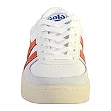 - With a striking colour palette, Gola Grandslam Trident for women speaks volumes when it comes to individual sneaker style. This classic women’s court sneaker features a deep cup sole unit in vintage looking off white and is complemented with a white upper and suede colour pops of hot coral and marine blue. Wear anywhere, anyhow you wish; Grandslam Trident teams well with so many looks. As part of Gola’s move to be more sustainable, this style features a 80% recycled PU main body upper made from post-consumer recycled polyester and polyvinyl.