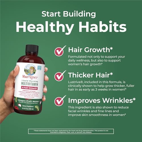 MaryRuth's Liquid Multivitamin + Hair Growth | Biotin 10000mcg | Lustriva Hair Growth Supplement | Clinically Tested in Women for Thicker Hair & Facial Wrinkle | Skin Care | Ages 18+ | 15.22 Fl Oz