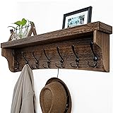 【Fit Studs Spacing】Hole to hole spacing:16 inch,mounting hole spacing match stud spacing.Size:35"(L) * 9"(W) * 5.2"(H).Long wall coat rack with shelf. 【Solid Wood】:Made of solid wood.Heavy duty rustic style wall shelf with hooks for longer daily use. 【Large Shelf】:Shelf size:35"(L) * 5.2"(W),provice enough storage space.Ideal to put plants,photos or wood decor on the upper flat shelf. 【No Assembly Required】:The metal hooks had been mounted on the wooden plank,the 35 inch long wall mounted coat rack shelf with 7 triple hooks for hanging coats,keys,plants,clothes,clothing,towels,jacket,hats,purses,photos in your entryway,bathrooms,mudroom,laundry room,etc 【Rustic Style】:Impressed with its rustic look,the weathered brown color add a rustic aesthetic to your room .Pacakge included 1 x long coat rack wall mount with shelf, and mounting hardwares.