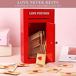 - Romantic wooden postbox for timeless love: Capture the magic of love with this charming red wooden postbox (3.94 x 7 x 1.8 inches), designed to hold heartfelt messages that never go out of style. Perfect for sharing sweet surprises with your partner every day. Thoughtful and complete mini love letter kit: This set has everything you need to express your affection, including 50 blank notes (3.15 x 1 inches), 50 envelopes (1.2 x 1.8 inches), heart-shaped sealing stickers, and a helpful instruction card to inspire your creativity. Whether it's for Valentine's Day, anniversaries, date nights, or just because, this kit is a heartfelt way to show your love. Package includes: 1 x Postbox 50 x Blank love notes 50 x Envelopes 120 x heart sealing stickers 1 x instruction card