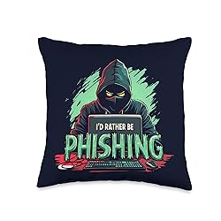 I'd rather be Phishingm, Computer Security Hacker Software Sysadmin Cybersecurity Spam Funny Graphic 100% spun-polyester fabric Double-sided print Filled with 100% polyester and sewn closed Individually cut and sewn by hand Spot clean/dry clean only