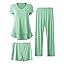 SUNNYBUY 3 PCS Maternity Breastfeeding Pajamas Set, Hidden Nursing Tops, Adjustable Pregnancy Shorts & Pants Postpartum PJS