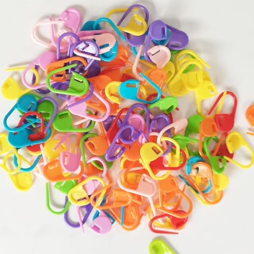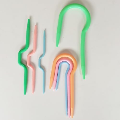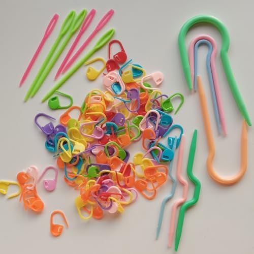 100 Mix Color Knitting Stitch Counter Crochet Locking Markers and 7 U Shape Multicolor Bent Cable Stitch Holder Needles Plastic Twist Curved Hand Knitting Needles with 6 Large Blunt Knitting Needles