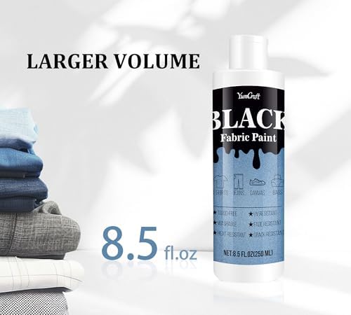 Fabric Paint Black, 8.5oz Fabric Paint for Clothes Permanent, Fabricoat Textile Paint Non-Toxic, Clothing Medium Dye Soft for Fabric Diy Crafts, T-Shirts, Shoes, Jeans, Canvas, Leather