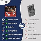 - Handheld Game Console 5 Inch Screen, Retro Gaming Console with 64G Built-in 15000+ Classic Games, 1280x720 Pixels, Game Searchable, 5000mAh Battery, with Desktop Stand (Transparent)