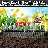 Thatch Rake for Lawns, Dead Grass Dethatcher Rake Removal Tool Heavy Duty Long Handle 54 inch, 13 inch Wide 11 Tines Manual Lawn Thatcher for Loosening Soil in Yard Garden