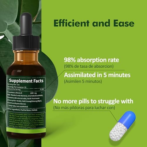 Milk Thistle Liver Detox Drops, Cardo Mariano (con Silimarina) y Diente de León para el Hígado Graso, Liver Support Supplement w/Artichoke & Dandelion Extract for Liver Cleanse & Repair. 2oz