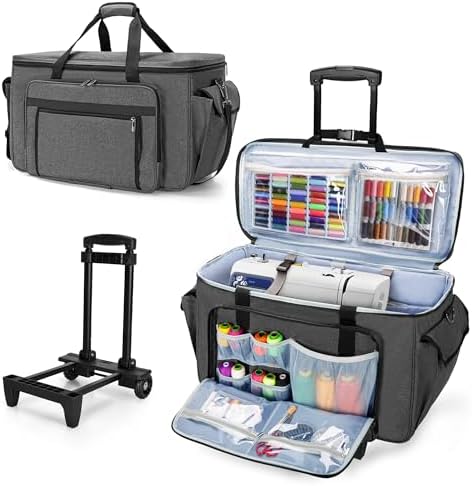 - ALL-IN-ONE STORAGE: Whether you need to go out for a sewing class, embroidery craft activity or for home organization, CURMIO rolling embroidery machine carrying case allows for integrated storage to keep your sewing supplies organized.