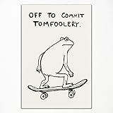 Xianyojafa Frog Poster, Quote Off To Commit Tomfoolery Canvas Wall Art, Cool Skateboard Frog Print, Funny Animal Posters for Room Aesthetic 8x12in Unframed