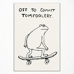 Funky Frog Wall Art Collection: A set of playful frog-themed prints designed to add humor and personality to your home, dorm room, or office space Off To Commit Tomfoolery Skateboard Frog Poster: Features a cool frog in motion on a skateboard, perfect for creating a fun and trendy atmosphere in bedrooms or game rooms Funny Frog on Toilet Reading Newspaper Print: This hilarious print captures a frog in a relatable and comical bathroom moment, making it the ideal decor for bathrooms or powder rooms Vintage Playing Banjo Frog Poster: A charming vintage-inspired design of a frog playing the banjo, adding a nostalgic and whimsical touch to your living room or music space High-Quality Prints for Lasting Appeal: Printed on premium canvas or art paper with fade-resistant inks, these pieces ensure durability and vibrant colors for years to come