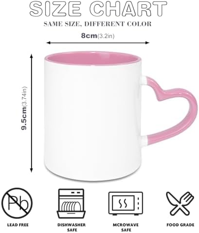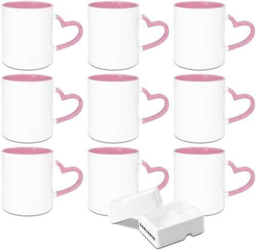 SUBLOVER Set of 9 Sublimtion Blanks Ceramic White Tazas Para Coffee Mugs 11OZ Sublimation Cups Bulk For Christmas for Mug Press Machine,Color Inner and Heart Handle(Pink)