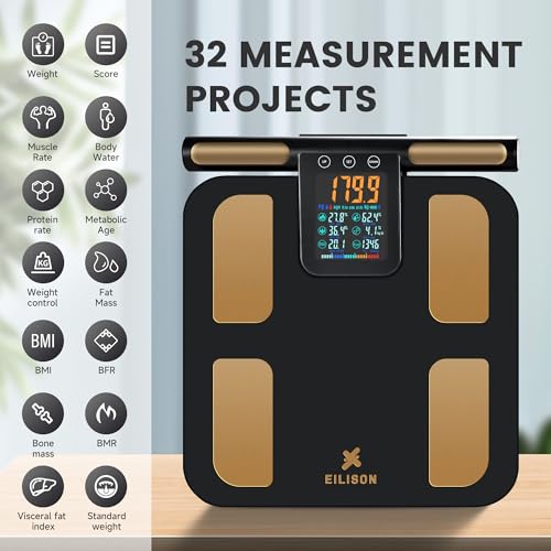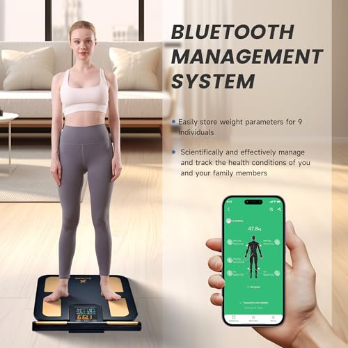 - 8-ELECTRODE FULL-BODY ANALYSIS WITH BIA TECHNOLOGY: Utilize advanced 8-electrode bioelectrical impedance analysis (BIA) to measure fat, muscle mass, and water distribution across arms, legs, core, and torso. High-precision sensors and a dual-core CPU ensure accuracy for 23 metrics, including BMI, visceral fat, and bone density, ideal for tracking fitness progress
