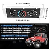Compatible Models: This climate control module compatible with 1999-2001 Jeep Wrangler TJ with Air Conditioning, 2002-2004 Jeep Wrangler TJ with A/C Control Switch with Right Hand Drive. Replace Part Number: Heater Control Panel fit for 55037473AB, HS-373, SW2348. Warm tips:Our product do not fit for 2005-2006 Jeep Wrangler (The appearance is the same as our product, but the internal program is different and not compatible with our product), please confirm your car model before purchasing. Plug and Play: Simply remove the old unit and plug this HVAC Climate Control Panel directly into place. With the original size matching, installation is quick. Notice: For some compatible models, the wire harness may be too long, you can use the original vehicle harness instead. Great Features: Our AC Control Panel is designed for easy operation and seamless integration with your vehicle's HVAC system. It ensures a comfortable driving experience by enabling quick and precise control of air circulation, speed, and temperature. The clearly marked buttons make it easy for both drivers and passengers to adjust the climate settings. Durable Material: This Air Conditioning Control Panel is made of high-quality ABS plastic, featuring a smooth finish. It offers waterproof capabilities, making it both easy to clean and resistant to wear over time, which offers high reliability and stability.