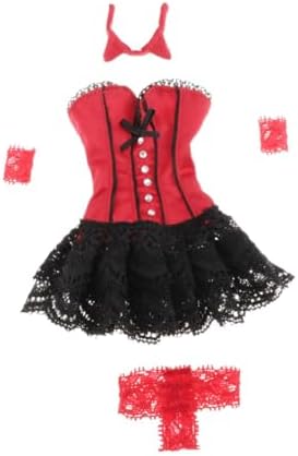 - [design Nightclub design] Elevate your 1/6 scale female action figure with this -piece dress set featuring a striking black and red color combo, elegant lace features, and a striking design by club and evening events.