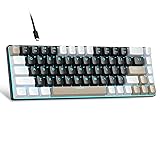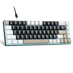 Mini portable 60% compact layout: MK-BOX is a 68 keys mechanical keyboard have cute small size, but with separate arrow keys and F1-F12, Fn function keys you need, can use it for gaming or work while saving space. Mechanical Brown Switch: the feature button sound is quiet, the resistance is small, a good balance of click switch and linear switch performance in terms of acoustic feedback and triggering. Classic charming blue LED backlit: Customize multiple illuminated LED light effects, supports about 16 backlight modes, press Fn + Ins can control it, FN + ←/→ control backlight speed, FN + ↑/↓ control backlight brightness. Full anti-ghosting keyboard: all 68 keys are no conflict, black white brown mash up design, ergonomic suspension double-color injection keycap, double kickstand feet adjustable typing angle and detachable usb cable, both practical and beautiful. Extensive compatibility: MageGee MK-Box mechanical keyboards use USB 2.0 connector making it compatible with Windows (2000, XP, ME, Vista, 7, 8), Linux and Mac, plug and play, no drivers or software required.