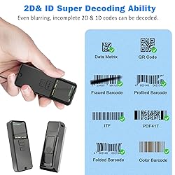 【Switching Storage mode】: Long press the button to enter inventory mode and store barcode data. There is no need to scan setting codes like other barcode scanners to enter storage mode. It uses a 16MB memory chip and can store 50000 to 100000 barcodes 【Three scanning modes】 - trigger mode+self- sensing mode+continuous mode. In automatic sensing mode and continuous scanning, there is no need to pull the trigger. Sometimes the self sensing scanning function is not active, please feel free to contact us and we will be at your service. 【Two upload modes: instant upload mode/storage mode】 The internal offline storage uses a 16MB memory chip and supports up to 100000 barcodes in offline storage mode. Scan and store barcodes when away from the receiver, and then upload the data in bulk to your device when needed. 【High compatibility and 1100mAh battery durability】 - Symcode Bluetooth scanner can work with laptops PC、POS、 Smartphones, tablets, iPhones, iPads, and computers connect seamlessly with common operating systems such as Windows XP/7/8/10, Mac OS, Linux, and Windows Mobile. In addition, the 1100mAh rechargeable battery can work continuously for 21 hours after being fully charged. 【Supported 1D2D Bar Code】1D 2D QR Code scanner can rapidly capture and decode most 1D and 2D codes either on paper or screen. Even blurring, incomplete barcodes can be read and uploaded at superfast speeds. 1D: Codabar, Code 11, Code93, MSI, Code 128, UCC/EAN-128, Code 39, EAN-8, EAN-13, UPC-A, ISBN, Industrial 25, Interleaved 25, Standard 25, 2/5 Matrix. 2D: Decode Capability: QR, PDF417, Data Matrix, Aztec code, Maxi Code.